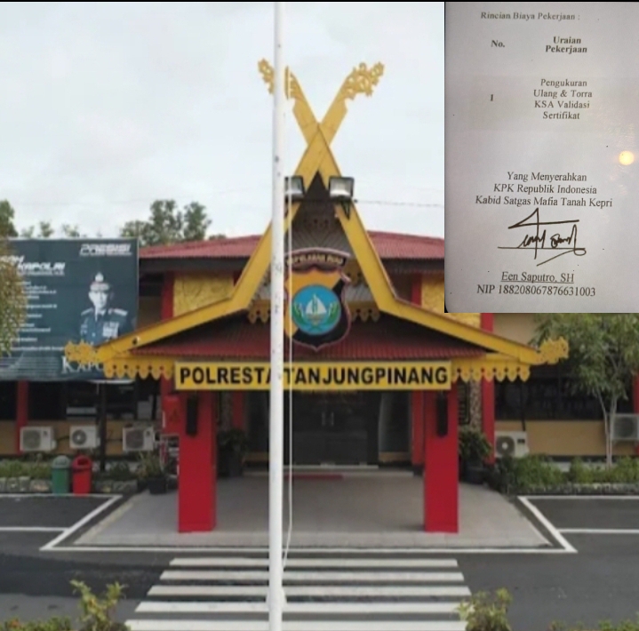 TANJUNGPINANG (Sempadanpos.com)– Satuan Reserse Kriminal (Satreskrim) Polresta Tanjungpinang dikabarkan telah menangkap lima orang tersangka dalam kasus pemalsuan dokumen pertanahan yang menghebohkan Provinsi Kepulauan Riau. Kasus ini menyeret sejumlah nama, termasuk Ketua LSM, oknum wartawan, serta seorang pelaku yang mengaku sebagai pegawai Komisi Pemberantasan Korupsi (KPK), Jumat (30/5/25).