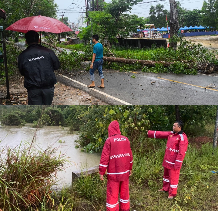 TANJUNGPINANG (Sempadanpos.com) – Hujan deras disertai angin kencang yang mengguyur Kota Tanjungpinang pada Minggu sore menyebabkan dua pohon tumbang di lokasi berbeda serta genangan air di sejumlah titik. Badan Penanggulangan Bencana Daerah (BPBD) Kota Tanjungpinang bersama aparat kepolisian bertindak cepat untuk memastikan keselamatan dan kelancaran aktivitas warga.