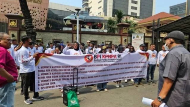 JAKARTA (Sempadanpos.com) – Badan Peneliti Independen Kekayaan Penyelenggara Negara dan Pengawas Anggaran Republik Indonesia (BPI KPNPA RI) memenuhi janjinya untuk melakukan aksi unjuk rasa di Gedung Kejaksaan Agung (Kejagung) dan Markas Besar (Mabes) Polri pada Kamis (7/11/2024). Massa mendesak penuntasan kasus dugaan korupsi yang melibatkan sejumlah pejabat di Kabupaten Lingga, Kepulauan Riau (Kepri).