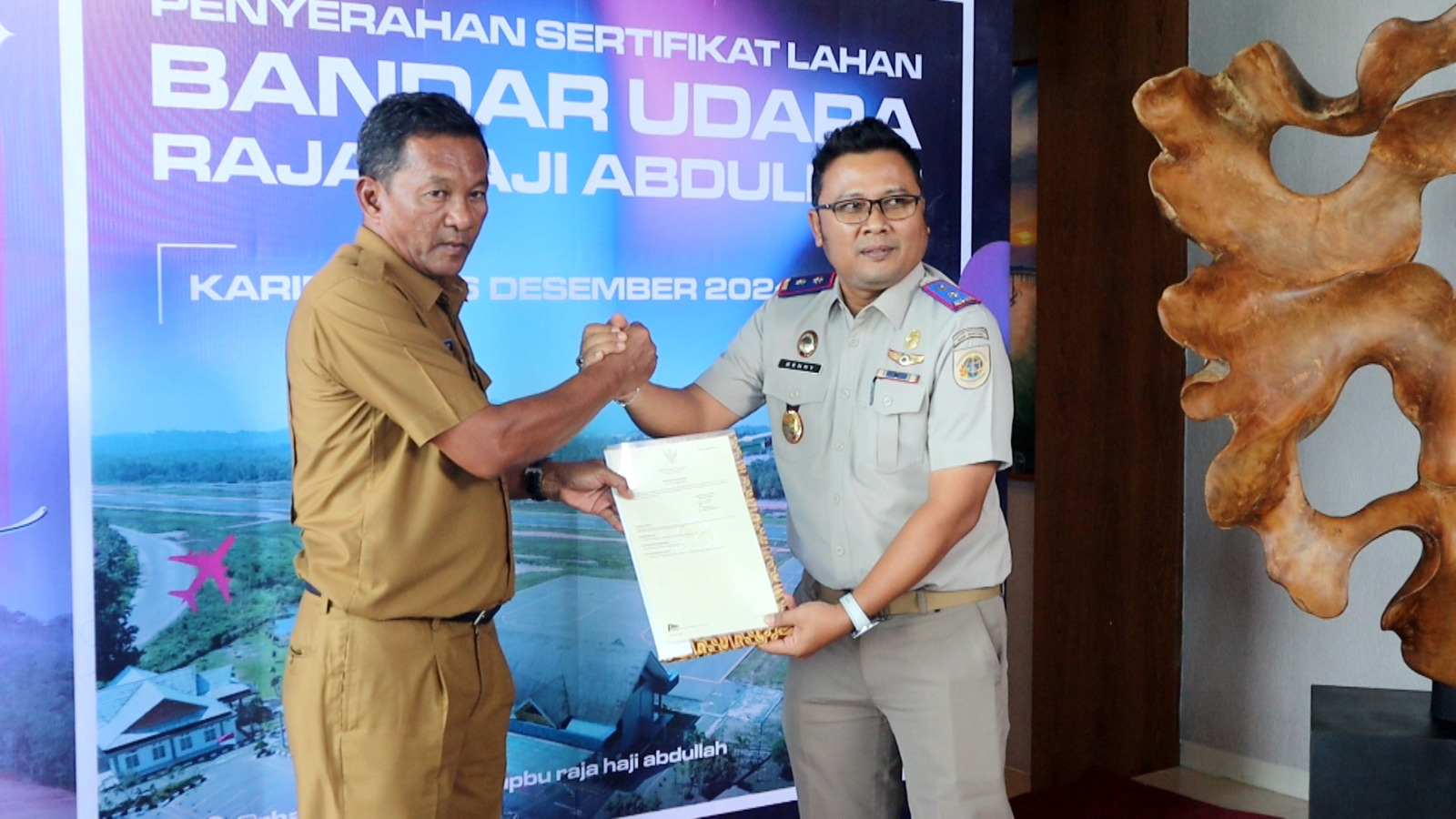 KARIMUN (Sempadanpos.com)– Badan Pertanahan Nasional (BPN) Kabupaten Karimun membuktikan komitmennya dalam mendukung percepatan pembangunan Bandara Raja Haji Abdullah (RHA). BPN Karimun berhasil menyelesaikan sertifikat lahan seluas 58 hektare yang telah dibebaskan oleh Pemerintah Daerah (Pemda) Karimun. Sertifikat tersebut resmi diserahkan kepada Pemda, Senin (16/12/2024).