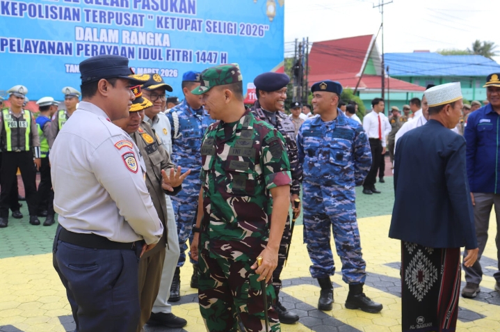 TANJUNGPINANG (Sempadanpos.com) – Komandan Kodim (Dandim) 0315/Tanjungpinang Kolonel Inf Abdul Hamid, S.I.P menghadiri Apel Gelar Pasukan Operasi Kepolisian Terpusat Ketupat Seligi 2026 dalam rangka pengamanan dan pelayanan perayaan Hari Raya Idul Fitri 1447 Hijriah di wilayah Kota Tanjungpinang, Kamis (12/3/2026).