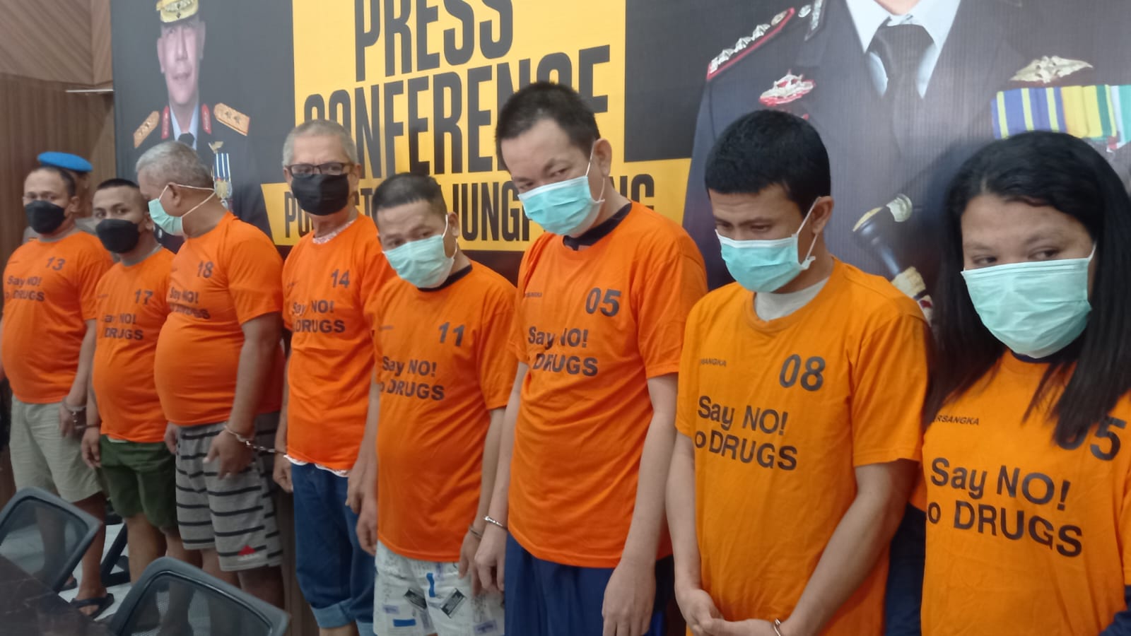 Kedelapan tersangka dijerat Pasal 114 ayat (1) jo Pasal 112 ayat (2) Undang-Undang Nomor 35 Tahun 2009 tentang Narkotika. Ancaman hukuman pidana maksimal 20 tahun penjara atau hukuman mati, serta denda hingga Rp10 miliar.