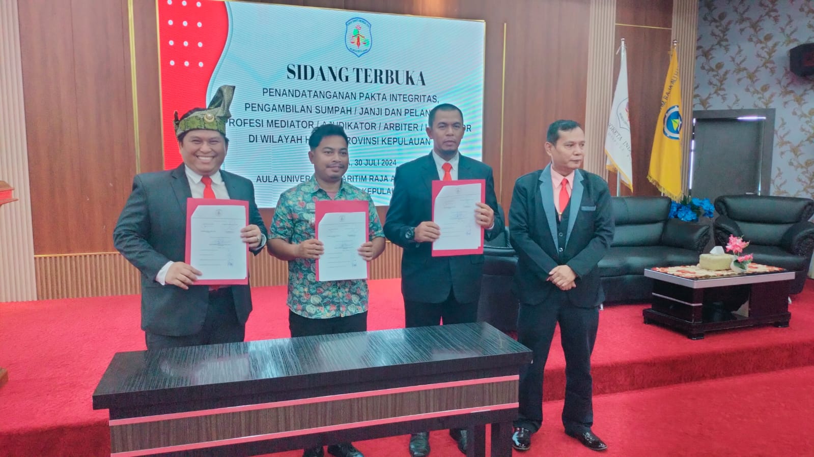 TANJUNGPINANG (Sempadanpos.com)- Dewan Sengketa Indonesia (DSI) melantik 26 profesional yang terdiri dari Mediator, Ajudikator, Arbiter, dan Likuidator di Aula Universitas Maritim Raja Haji (UMRAH), Pulau Dompak, Tanjungpinang, Selasa (30/7/2024). Pelantikan ini bertujuan untuk memperkuat penyelesaian sengketa di wilayah hukum Provinsi Kepulauan Riau.