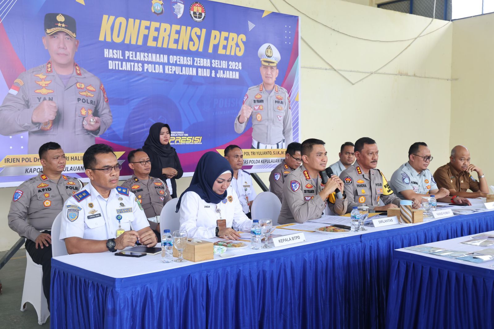 Dalam konferensi pers tersebut, hadir sejumlah tokoh penting, termasuk Dirlantas Polda Kepri Kombes. Pol. Tri Yulianto, S.I.K., M.Si., Kabidhumas Polda Kepri Kombes. Pol. Zahwani Pandra Arsyad, S.H., M.Si., dan Kacab Jasa Raharja Provinsi Kepri Bapak Wanda P. Asmoro, serta perwakilan dari berbagai instansi terkait.
