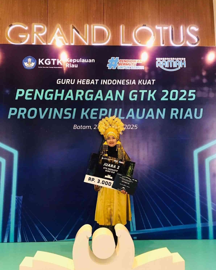 BATAM (Sempadanpos.com)– Dunia pendidikan Kepulauan Riau kembali menorehkan prestasi membanggakan. Guru Sekolah Luar Biasa Negeri (SLBN) 1 Tanjungpinang, Fera Wirda Yani, berhasil meraih Juara II pada ajang Final Penghargaan Guru dan Tenaga Kependidikan (GTK) Berprestasi dan Berdedikasi Tahun 2025 tingkat Provinsi Kepulauan Riau.