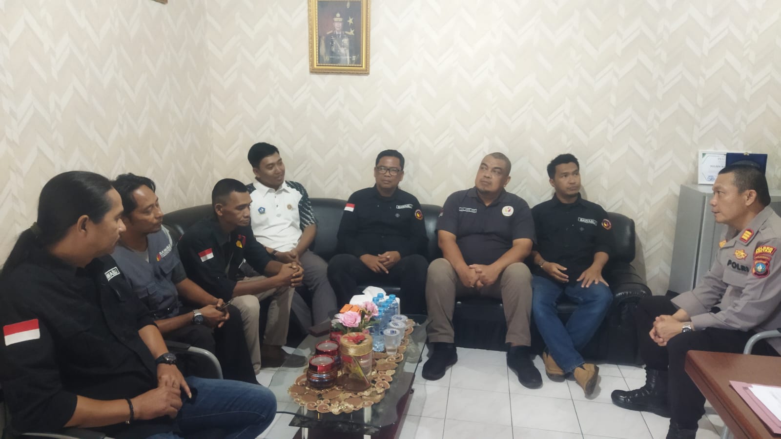 Kapolsek Bintan Utara, AKP Monang P. Silalahi, S.H, didampingi oleh Ps. Kanit Intelkam Polsek Bintan Utara, IPTU Indervi Yulidas, S.T, menyambut Yoserizal, Ketua Panwascam Seri Kuala Lobam; Bayu Hendro, Ketua Panwascam Teluk Sebong; dan Kurniawan, Anggota Panwascam Bintan Utara.