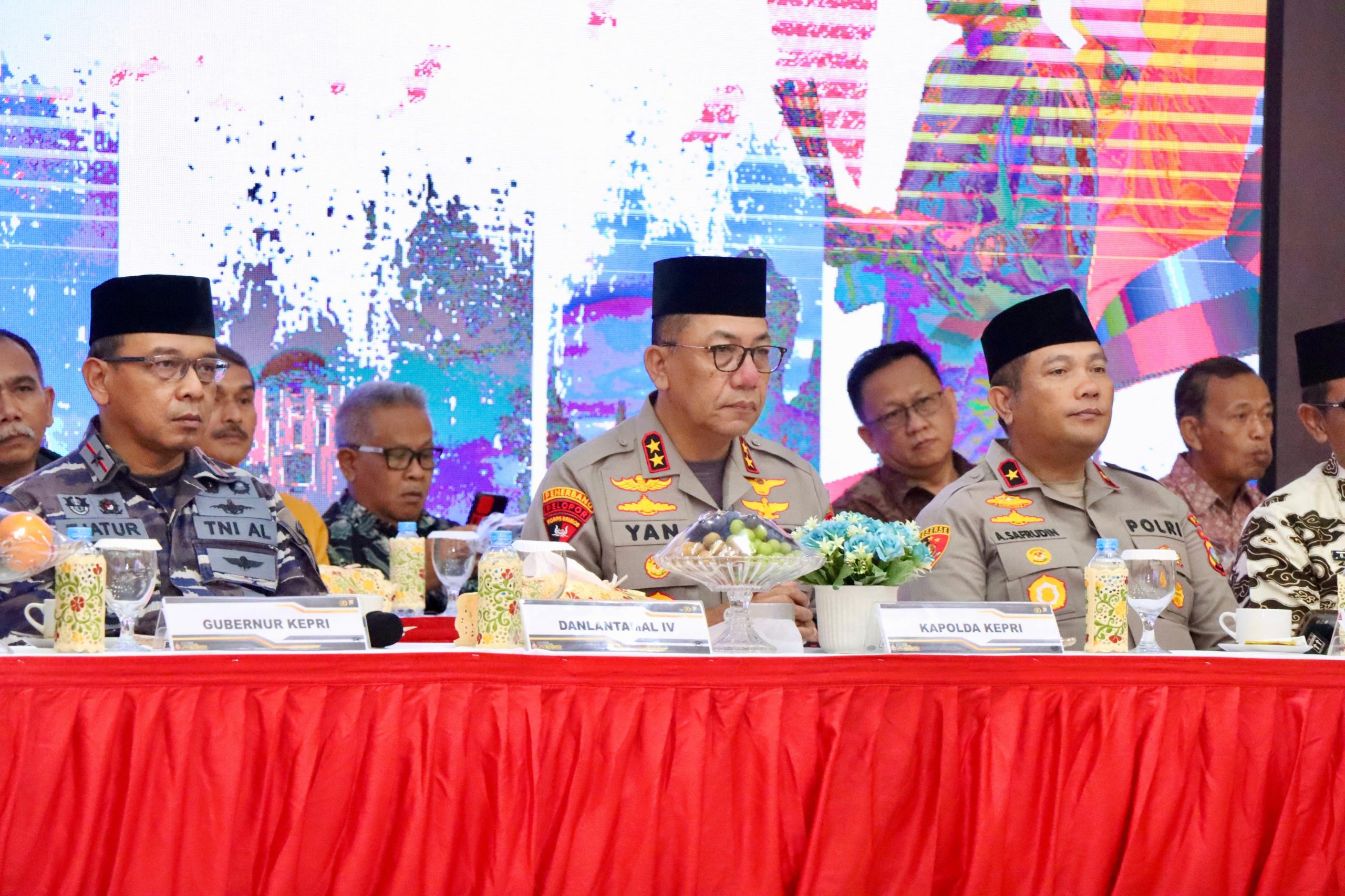 Hadir dalam acara tersebut Gubernur Kepri yang diwakili oleh Ka Biro Kesra Bpk Aiyub, S.E., M.Si., Pangkogabwilhan yang diwakili oleh L.O udara Kogabwilhan 1 Kolonel Sus Ampu Ismaraseli, Ketua DPRD Provinsi Kepri Bpk. Jumaga Nadeak, S.H., Danlantamal IV Batam Laksamana Muda TNI Yoos Suryono H., M.Tr. Opsla, Wakapolda Kepri Brigjen. Pol. Asep Safrudin, S.I.K., M.H., Kepala Zona Kamla Maritim Barat yang diwakili oleh Kolonel Bakamla Syarifuddin S.Ag., S.H., Kabinda Kepri yang diwakili oleh Kolonel Inf. Friandho Karim, S.Sos., Danlanud RHF yang diwakili oleh Mayor Pom Faisal Bagus, Pejabat Utama Polda Kepri serta Forkopimda Tingkat Provinsi Kepri, Forkopimda Kota Batam dan seluruh personel Polda Kepri.