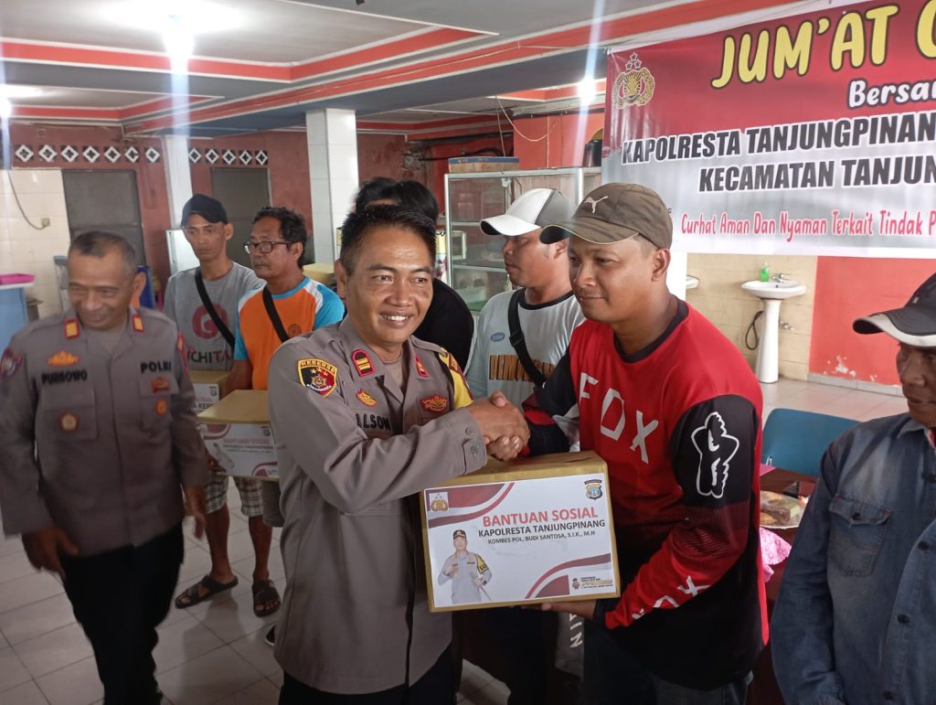 Kapolresta Tanjungpinang Gelar Jumat Curhat dan Bagikan Bansos kepada Buruh
