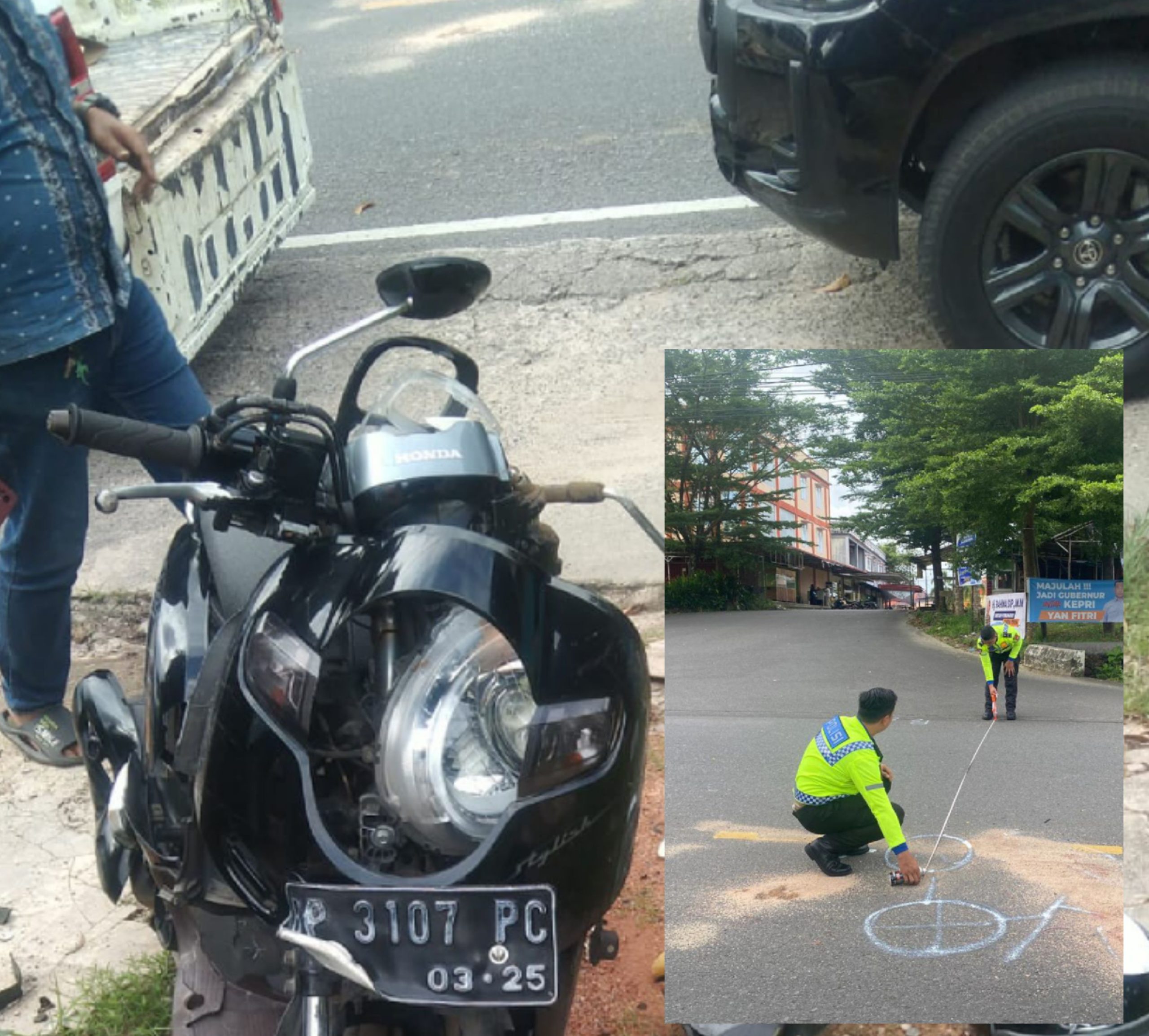 Saat memasuki Jalan Raya Uban Lama di Simpang Kijang Kencana 3, sepeda motor tersebut bertabrakan dengan mobil Toyota Hilux warna hitam dengan nomor polisi BP 8XXX B yang dikemudikan oleh K.