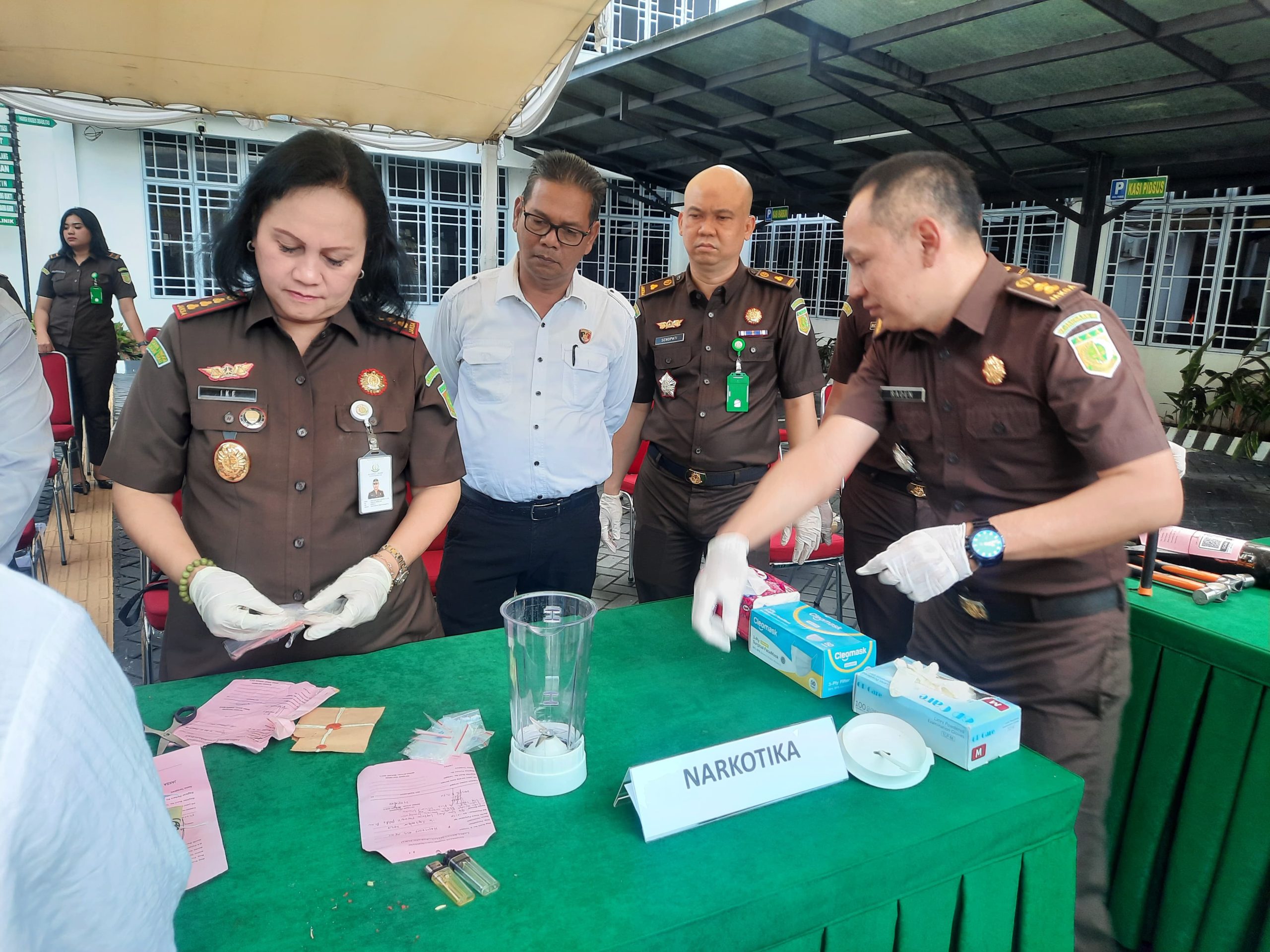Barang bukti narkotika yang dimusnahkan meliputi 10 butir ekstasi dan 6,5274 gram sabu, yang dihancurkan dengan cara diblender, lalu dilarutkan ke dalam air panas dan dibuang ke toilet kantor Kejari. Sementara itu, barang bukti Oharda dan Kantibum, termasuk beberapa handphone, dimusnahkan dengan cara dibakar dalam tong besi yang telah disediakan.