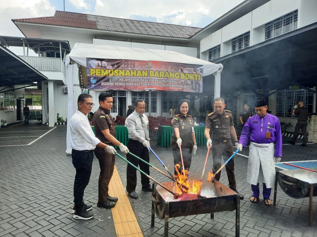 Pemusnahan tersebut dipimpin oleh Kepala Kejari Tanjungpinang, Lanna Hanny Wanike Pasaribu, dan didampingi sejumlah pejabat terkait, termasuk Kasi Barang Bukti, RD Akmal, serta Kasi Intel, Senopati.