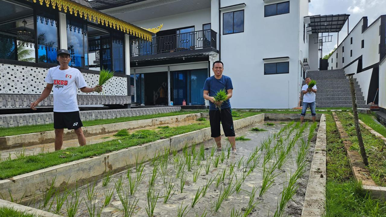TANJUNGPINANG (Sempadanpos.com)– Ketua Badan Pengurus Wilayah (BPW) Kerukunan Keluarga Sulawesi Selatan (KKSS) Provinsi Kepulauan Riau (Kepri), Ady Indra Pawennari, mengadakan pelatihan penanaman padi di areal sawah Komplek Paviliun Nusantara, Kelurahan Air Raja, Kecamatan Tanjungpinang Timur, Kota Tanjungpinang, Kamis (6/6/2024).