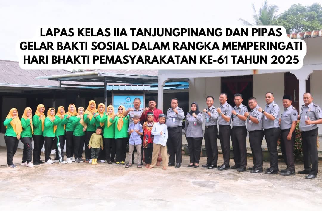 BINTAN (Sempadanpos com)- Dalam rangka memperingati Hari Bhakti Pemasyarakatan ke-61 Tahun 2025, Lembaga Pemasyarakatan Kelas IIA Tanjungpinang bersama Paguyuban Ibu-Ibu Pemasyarakatan (PIPAS) menggelar kegiatan bakti sosial di Panti Asuhan Bina Insani, Bintan, Senin (14/04).