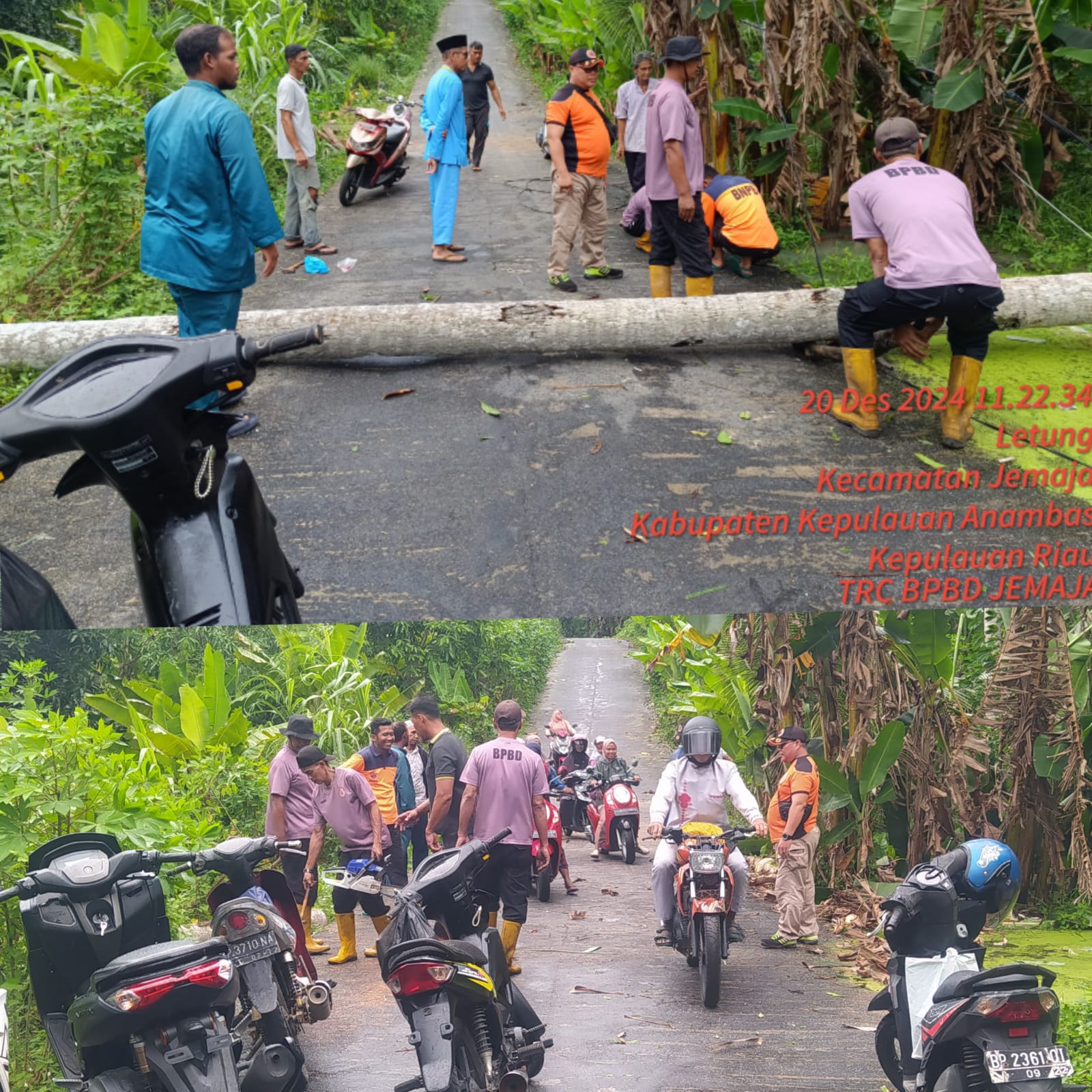 Menanggapi laporan dari masyarakat, Tim Reaksi Cepat (TRC) BPBD Jemaja langsung bergerak cepat ke lokasi kejadian. Mereka melakukan pemotongan pohon dan membersihkan sisa-sisa yang menghalangi jalan.