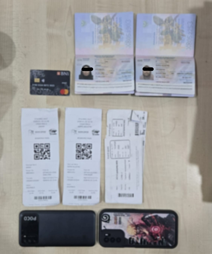 Adapun barang bukti yang berhasil diamankan meliputi dua buah paspor, dua unit telepon genggam, tiket kapal internasional Batam–Malaysia, boarding pass kapal dan pesawat, serta kartu ATM yang digunakan untuk transaksi pengurusan keberangkatan CPMI ilegal.