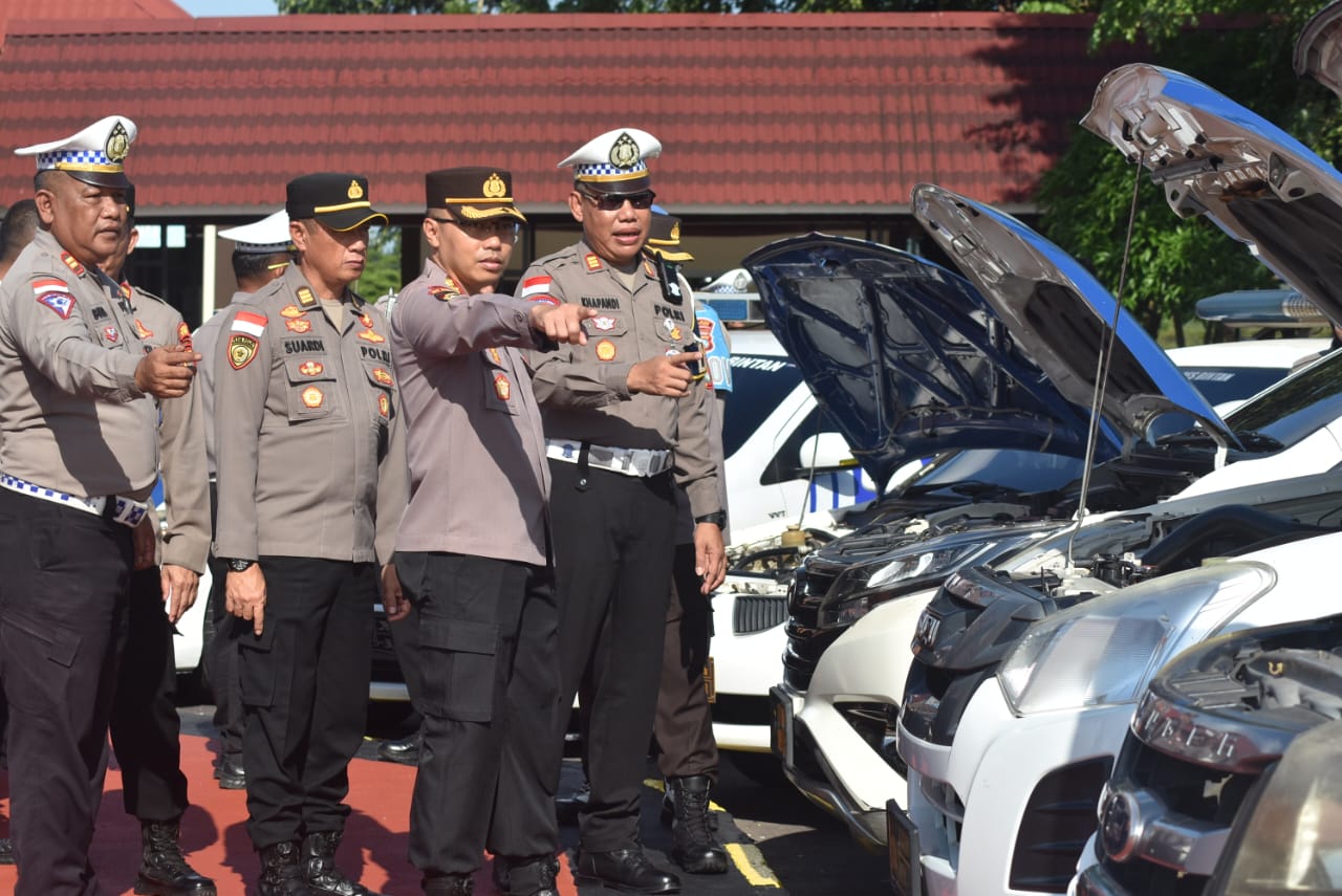 Pemeriksaan dilakukan terhadap berbagai jenis kendaraan, termasuk kendaraan roda dua, roda empat, dan kendaraan besar seperti Water Canon untuk mengantisipasi terjadinya demo. “Awal pemeriksaan kami lakukan pemeriksaan kendaraan, baik kendaraan roda dua, roda empat hingga ke kendaraan besar seperti Water Canon juga diperiksa dengan teliti,” terang AKBP Riky Iswoyo.
