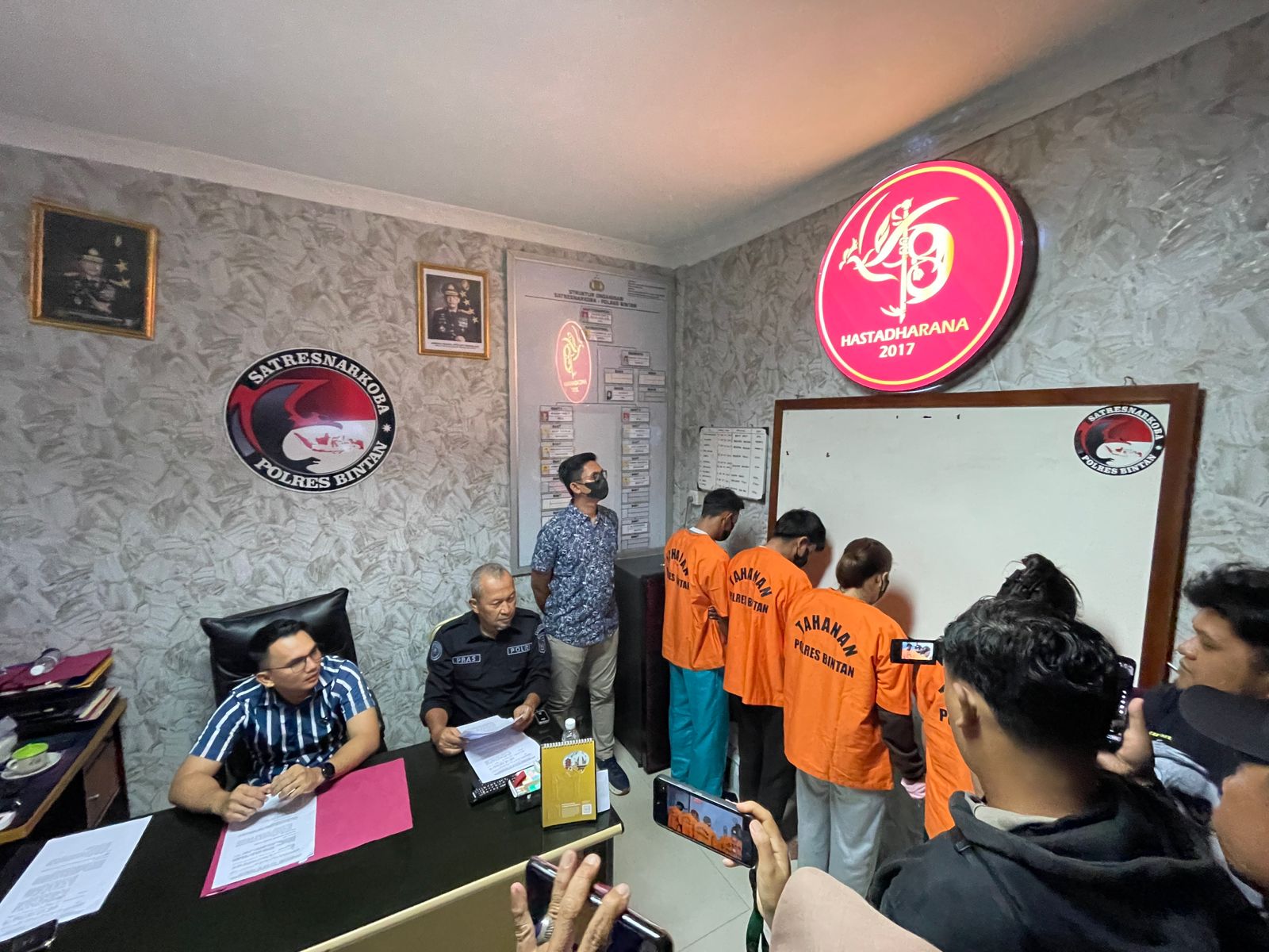 Konferensi pers dipimpin langsung oleh Kasat Narkoba Polres Bintan IPTU Davinai Josie Sidabutar, S.Tr.K., S.I.K., M.H., didampingi Kasi Humas Polres Bintan IPTU Prasojo.