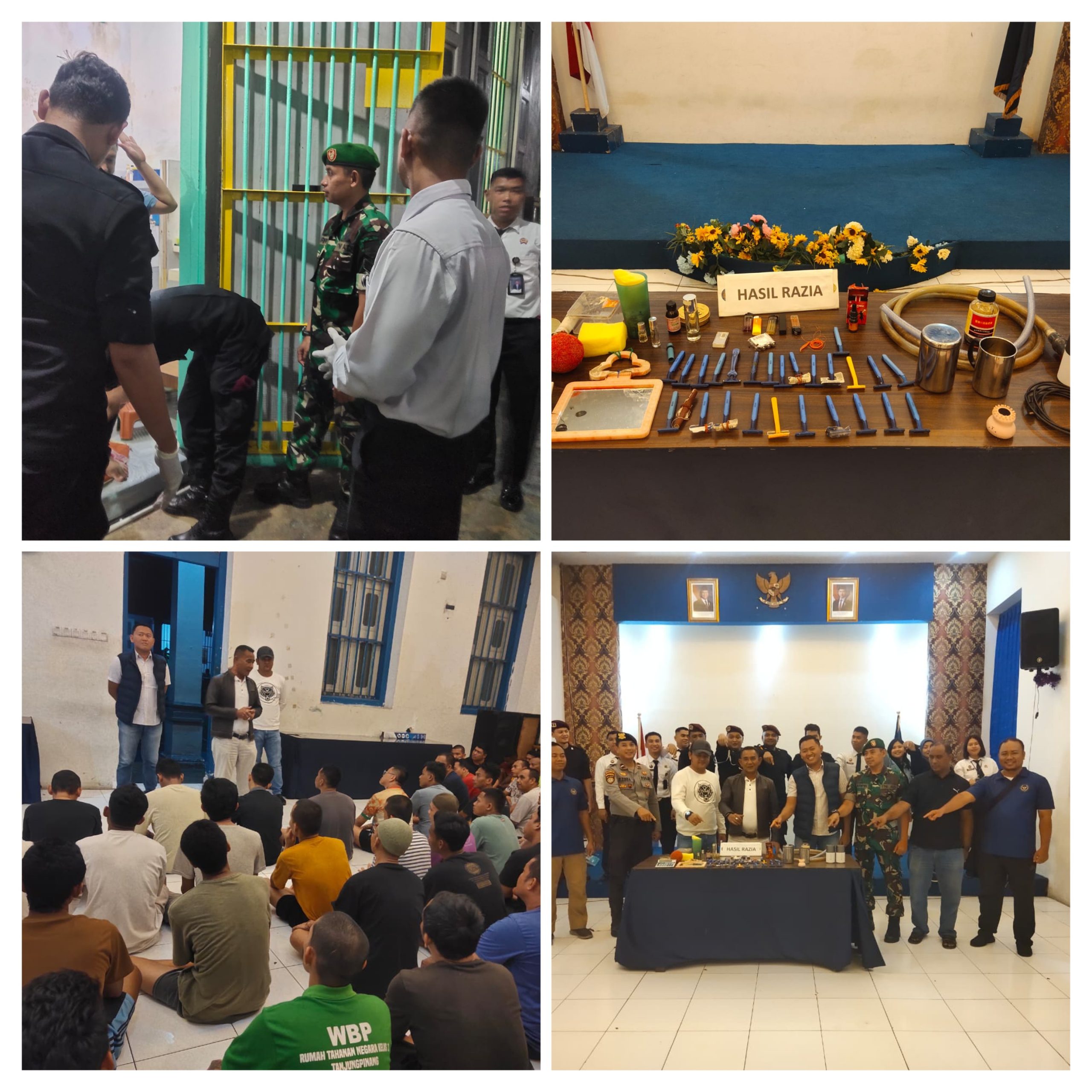 TANJUNGPINANG (Sempadanpos.com)– Dalam rangka menindaklanjuti arahan Menteri Imigrasi dan Pemasyarakatan melalui Direktur Jenderal Pemasyarakatan tentang penguatan pengendalian keamanan di lingkungan lembaga pemasyarakatan dan rumah tahanan, Rumah Tahanan Negara (Rutan) Kelas I Tanjungpinang menggelar razia gabungan bersama Aparat Penegak Hukum (APH) dari Polresta Tanjungpinang dan Koramil 0315/01 Tanjungpinang pada Sabtu malam (25/10/2025).