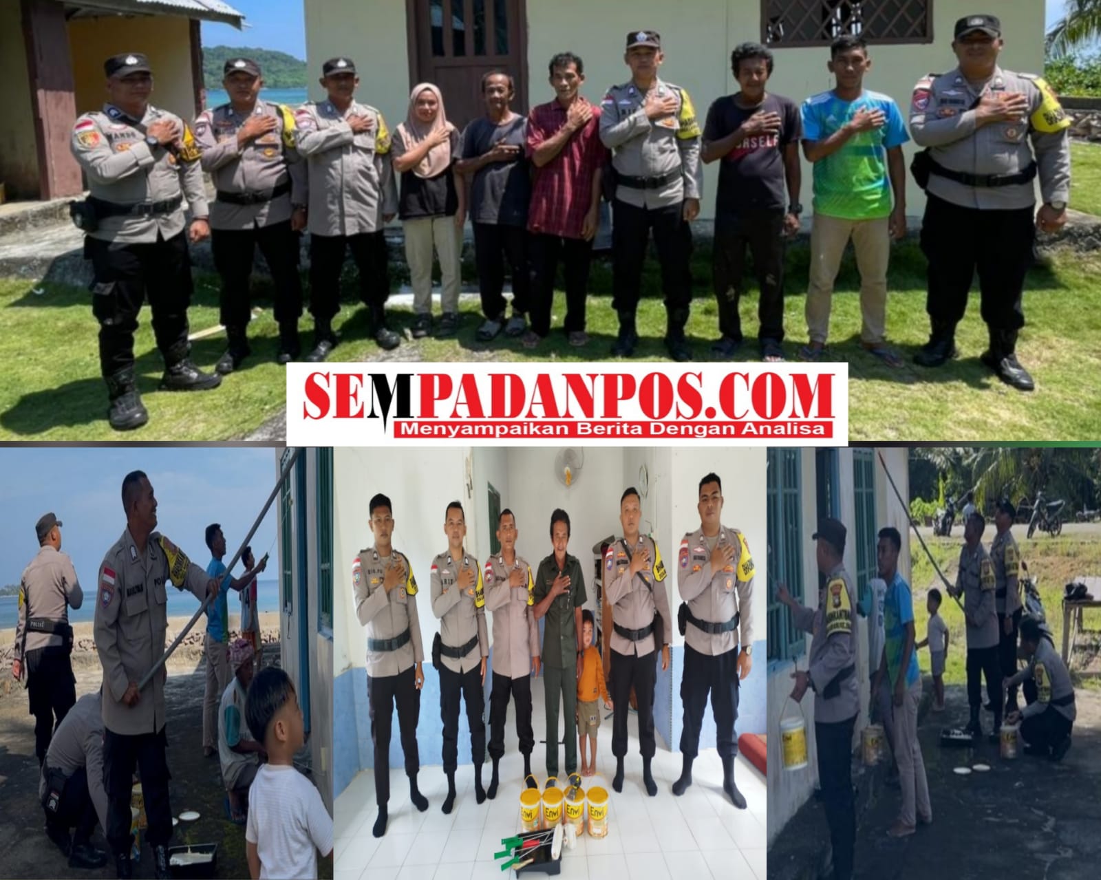 Sambut HUT Bhayangkara Ke-79, Bhabinkamtibmas Polsek Jemaja Beri Bantuan Cat dan Laksanakan Bakti Sosial di Surau Al’Amin