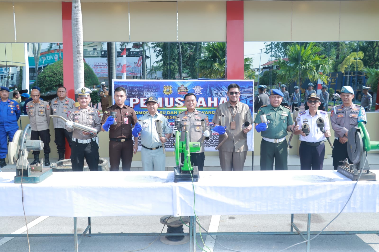 Satlantas Polres Karimun Musnahkan 221 Knalpot Brong dan 31 TNKB Tidak Sesuai